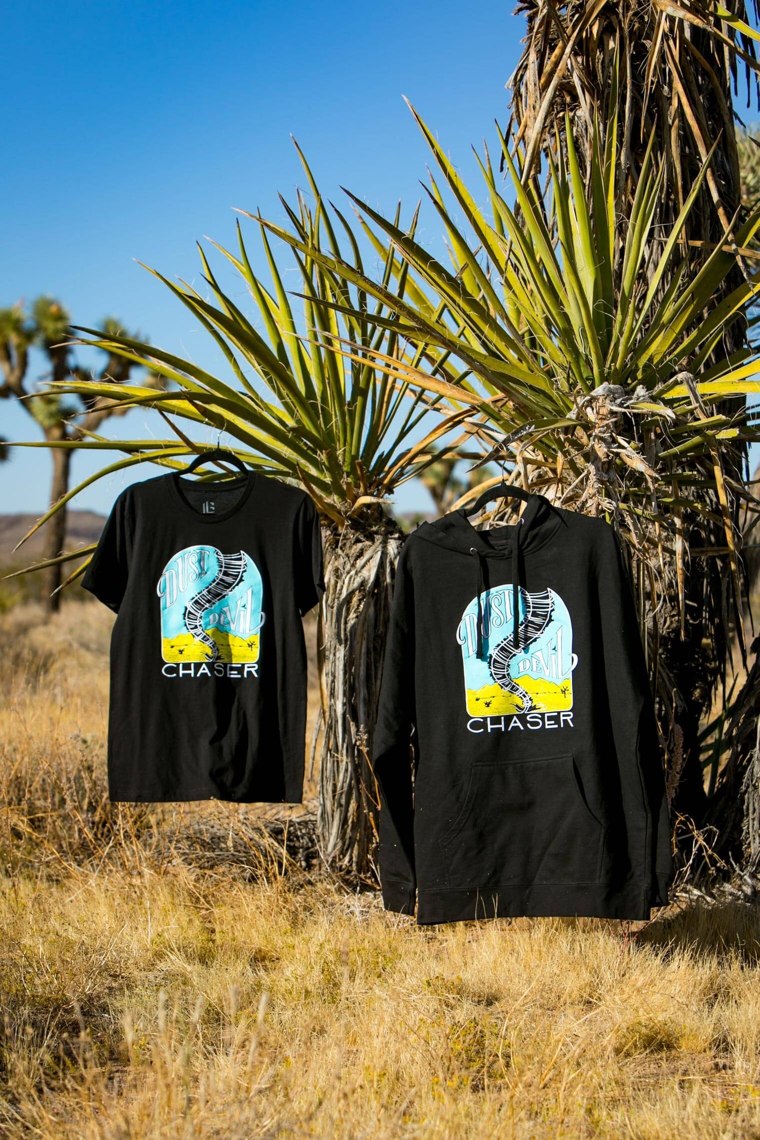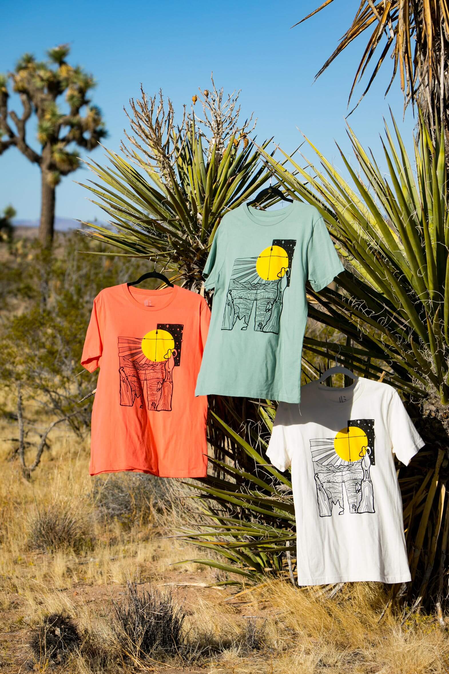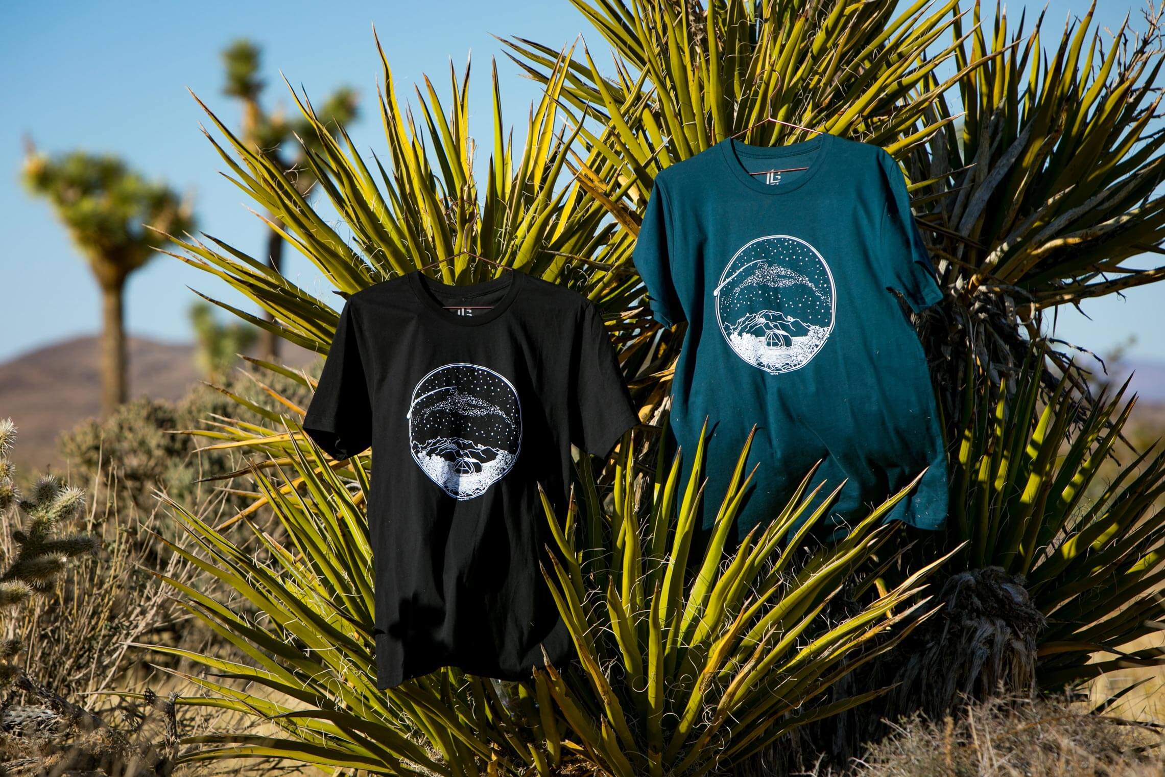 the Desert Camping t-shirt and hoodie collection glows in the dark to let your desert-loving self shine day and night.